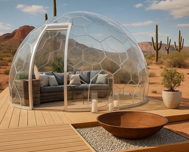 Domes in the Desert NV is an off-grid glamping and event destination in Pahrump, Nevada, built with sleek Hypedome geodesic domes. Our vision blends the wide-open beauty of the desert with modern comfort and eco-friendly living. Guests can stay overnight under the stars, gather for weddings, retreats, or celebrations, and enjoy immersive experiences that connect them with nature. The website should highlight stunning desert views, futuristic dome design, sustainability, and the sense of escape and wonder that defines our brand.